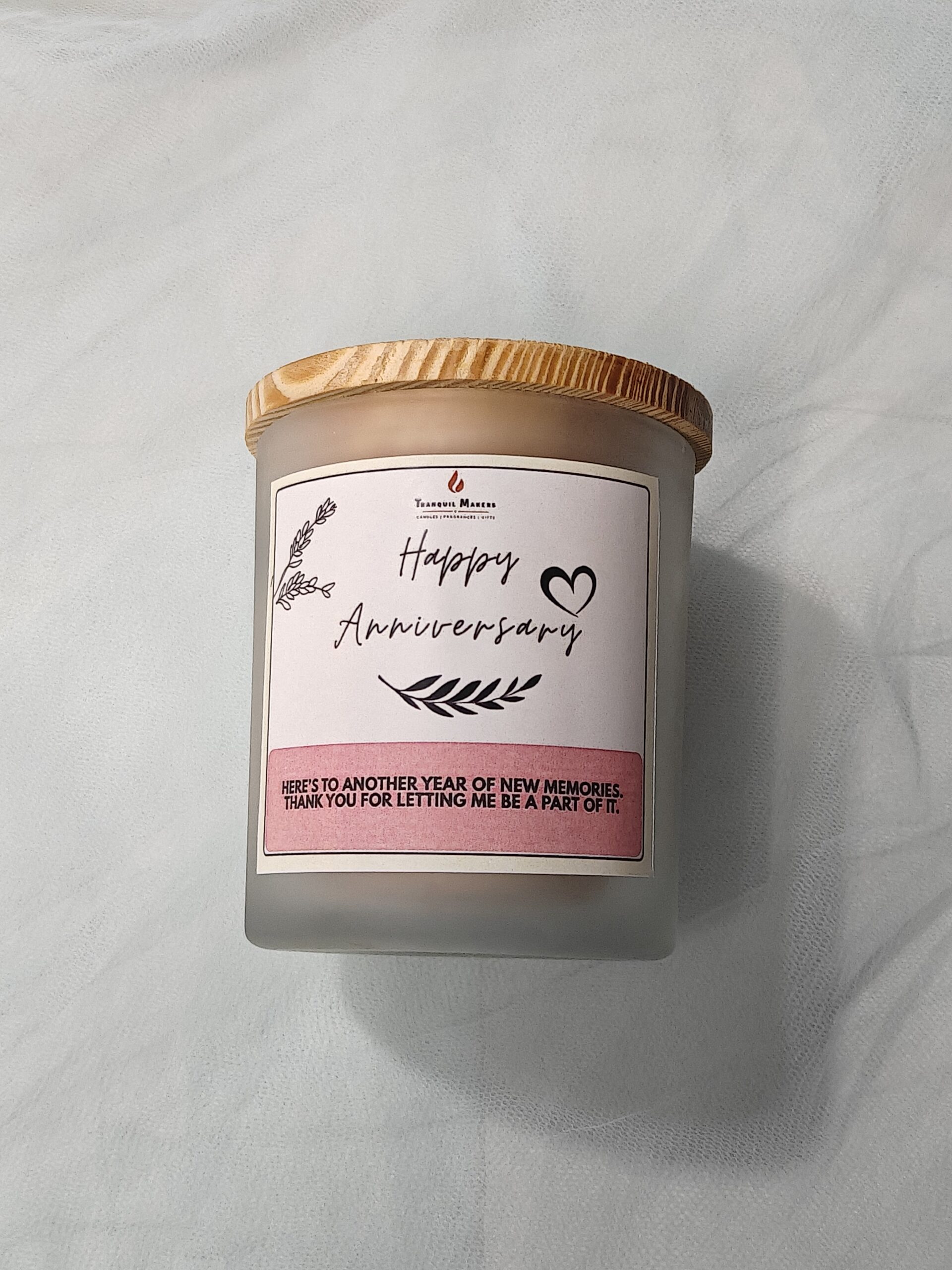 Express your love and appreciation with our beautifully crafted Happy Anniversary Scented Jar Candle — the ideal gift for your partner, friends, or anyone you hold dear. Designed to evoke feelings of warmth and positivity, this candle transforms ordinary moments into special ones with its delicate fragrance and thoughtful design.