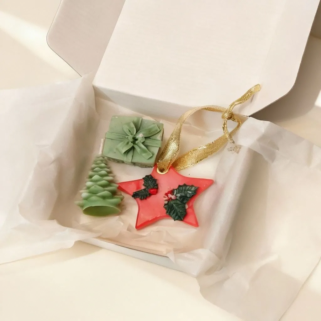 This set includes three beautifully crafted items, each chosen to embody the spirit of Christmas: