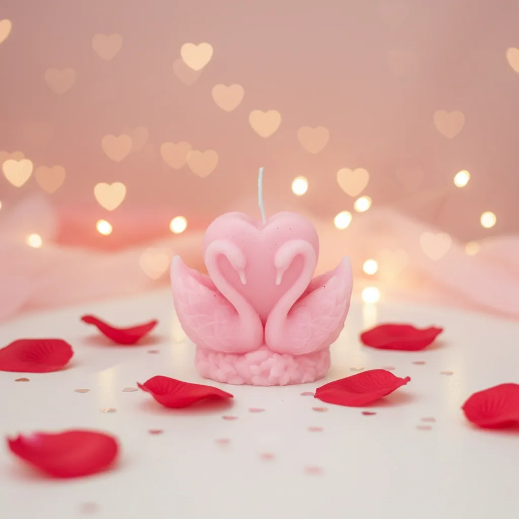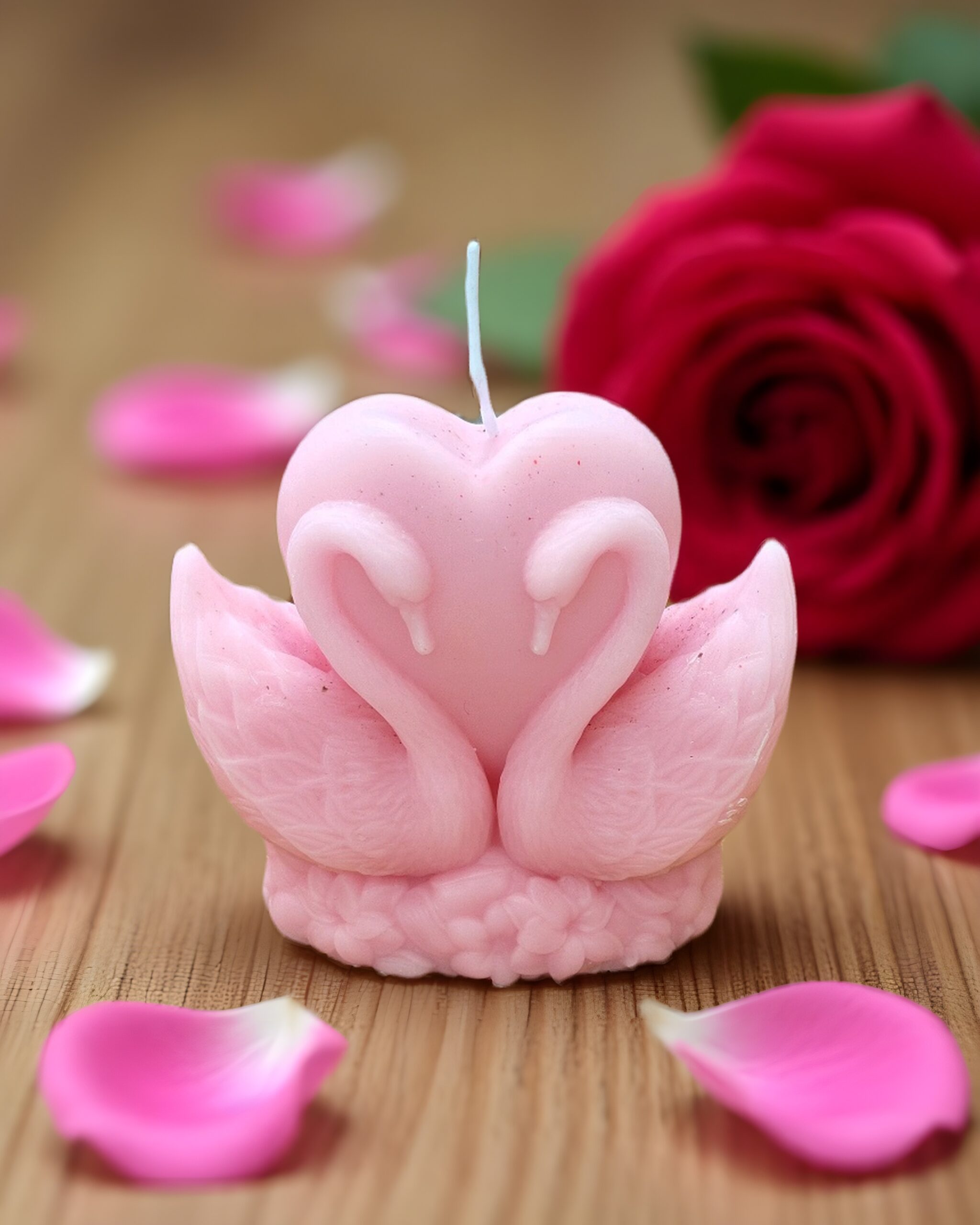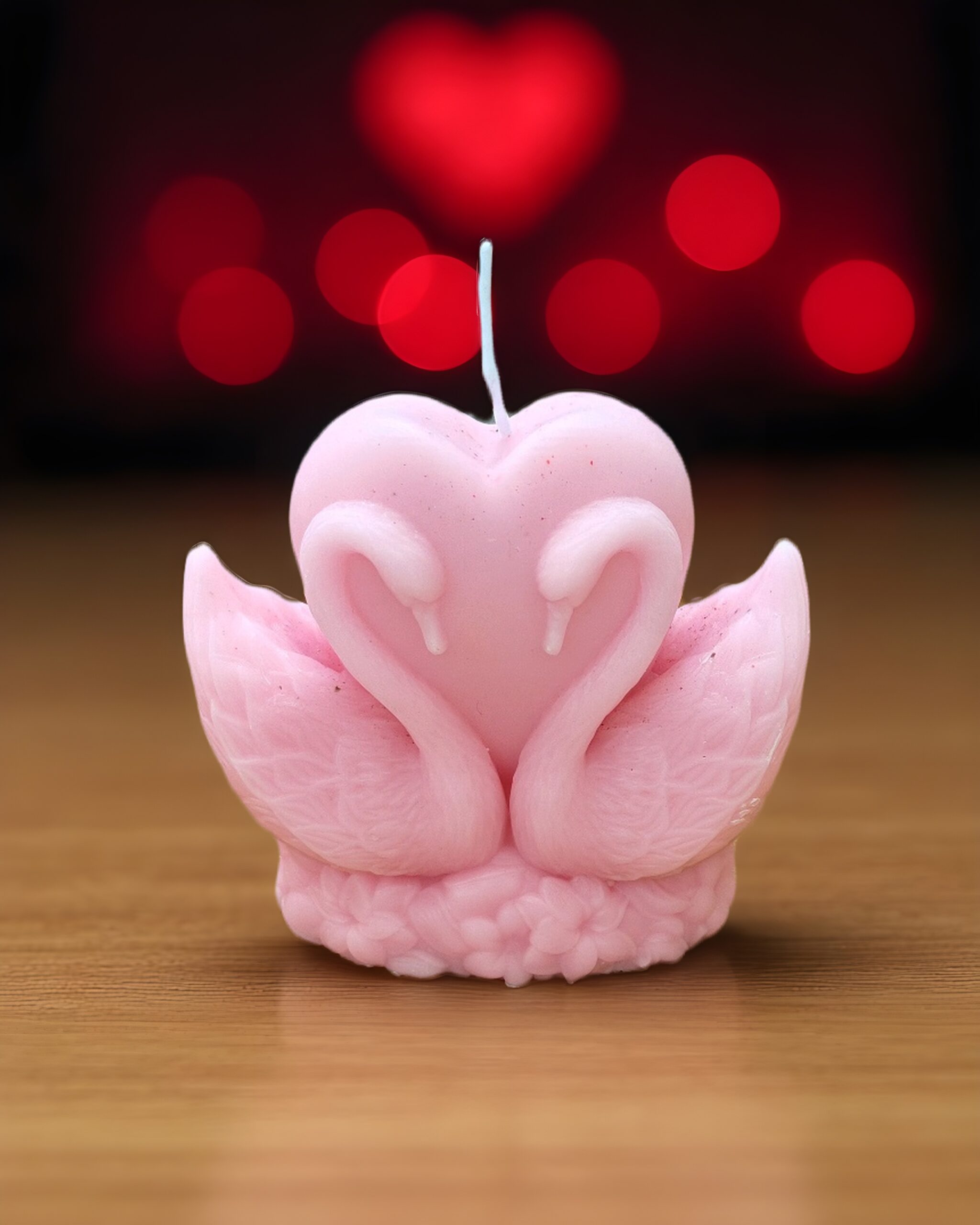 Celebrate love and togetherness with the beautifully designed Swan Heart Candle. Its elegant and intricate detailing showcases two swans gracefully connecting to form a heart—a universally cherished symbol of unity and affection. This candle perfectly captures the essence of romance, making it a thoughtful choice for special occasions.