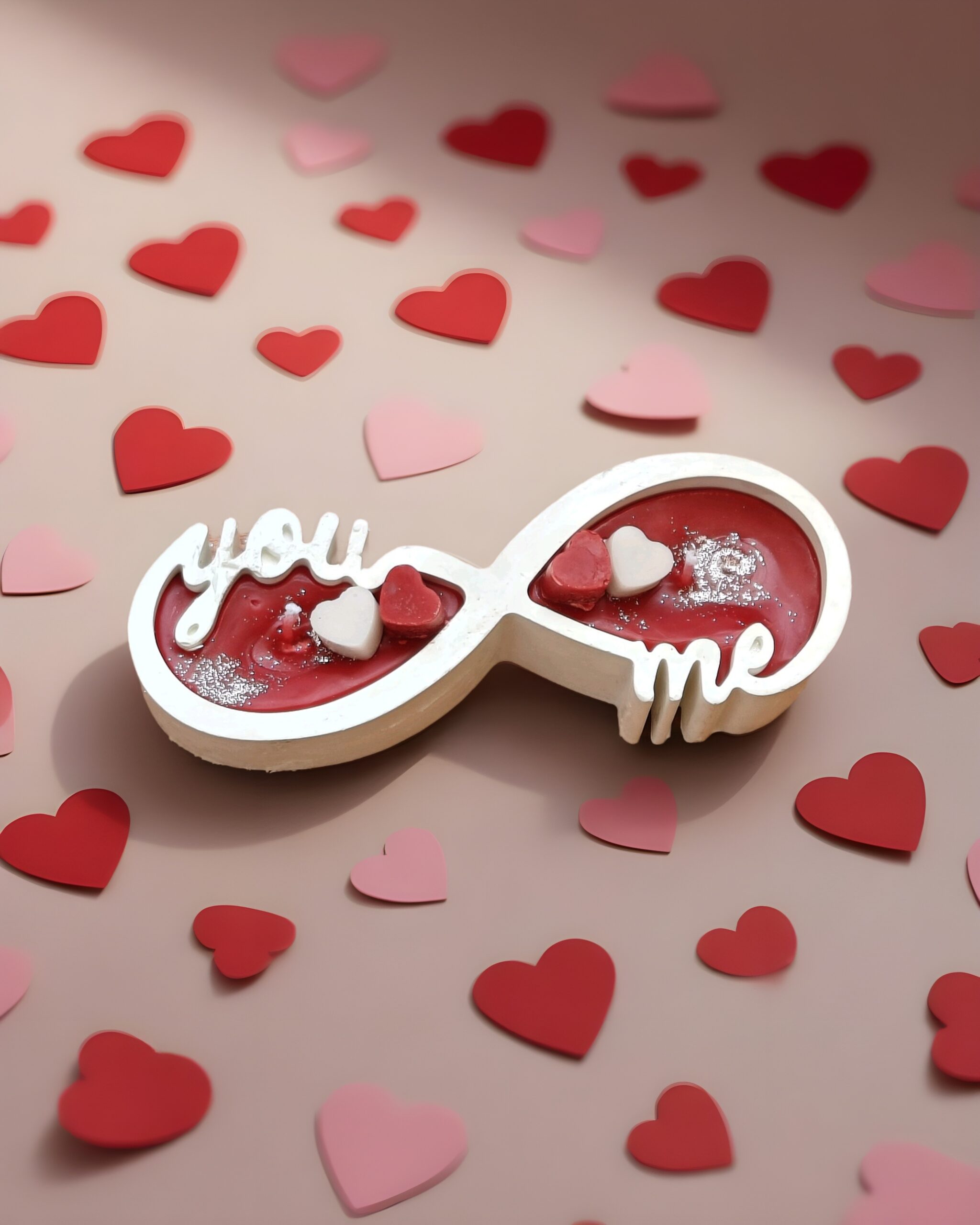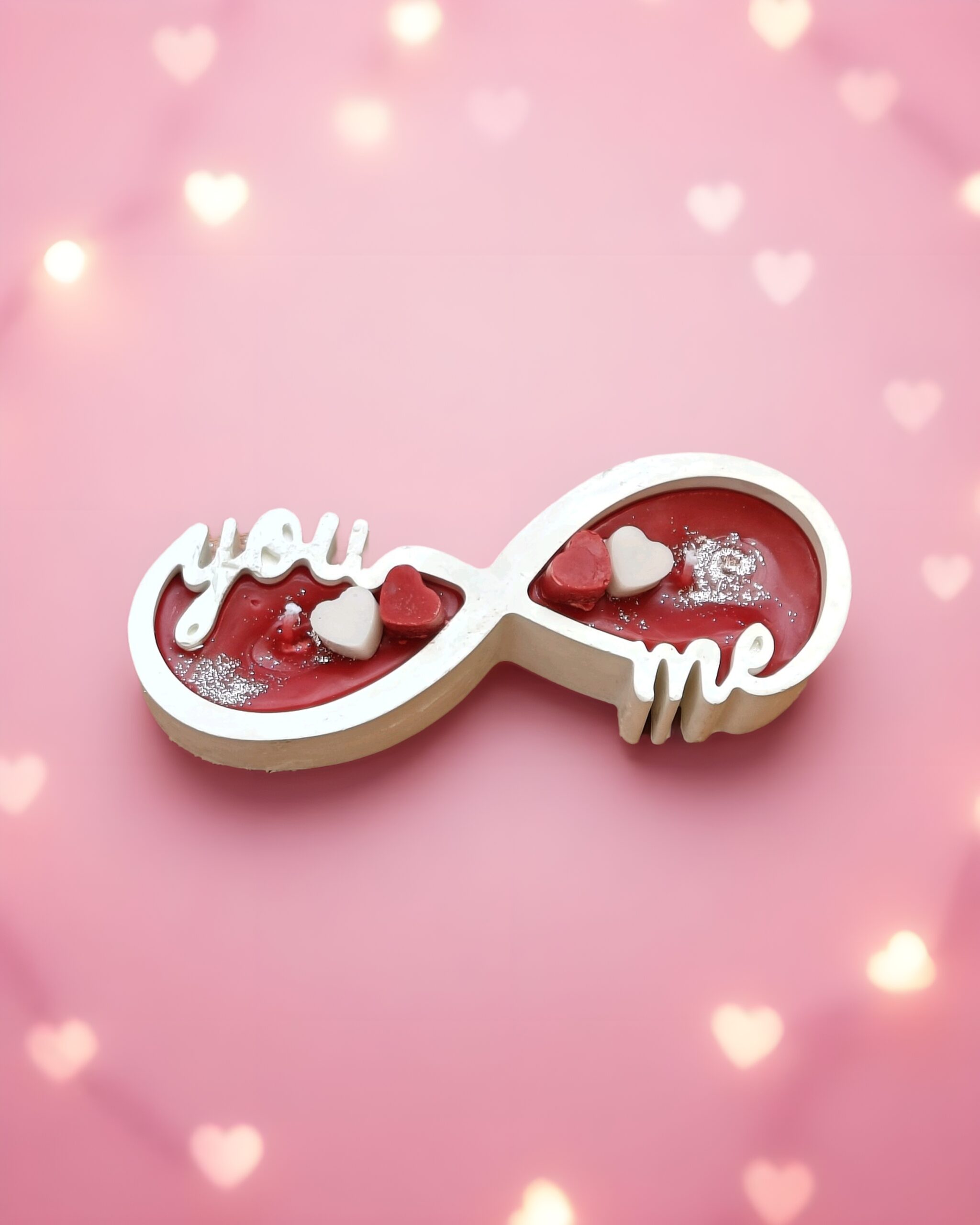 Celebrate love that never ends with our Infinity You & Me Valentine Candle Tray, a premium handmade romantic candle designed specially for couples. Crafted in an elegant infinity shape, this candle symbolizes eternal love and togetherness, featuring adorable heart detailing and a stylish “You” and “Me” topper.